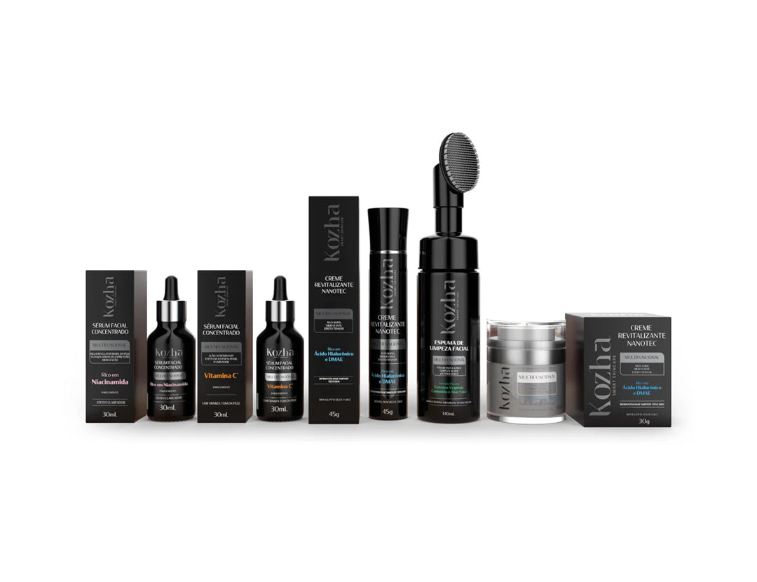 Experimente o poder do Smart Skincare Kozha! Desenvolvemos uma rotina completa em até 3 minutos, com nanotecnologia para máxima eficiência e performance, além de texturas leves, toque seco e rápida absorção.